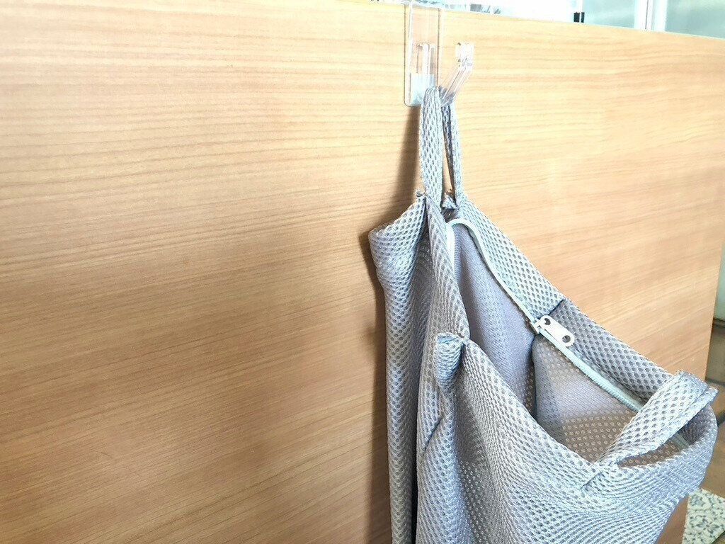 浴室前の脱衣スペースに洗濯ネットをフックでかけておけば、小さな子どもにも簡単に服を入れられるので、家族みんなで協力して取り組めますよ。