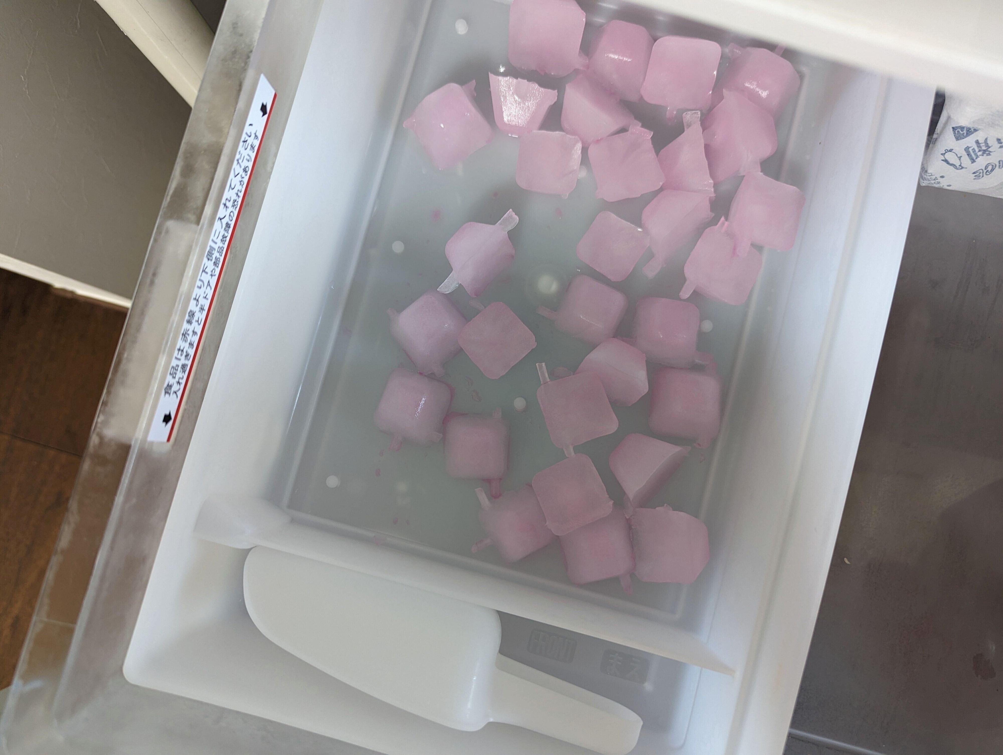 暑くなるとフル稼働するのが、冷蔵庫の製氷装置。飲み物に入れるのはもちろん、子どもたちはそのままポリポリかじることもしょっちゅうなので、消費量がぐんとアップします。
