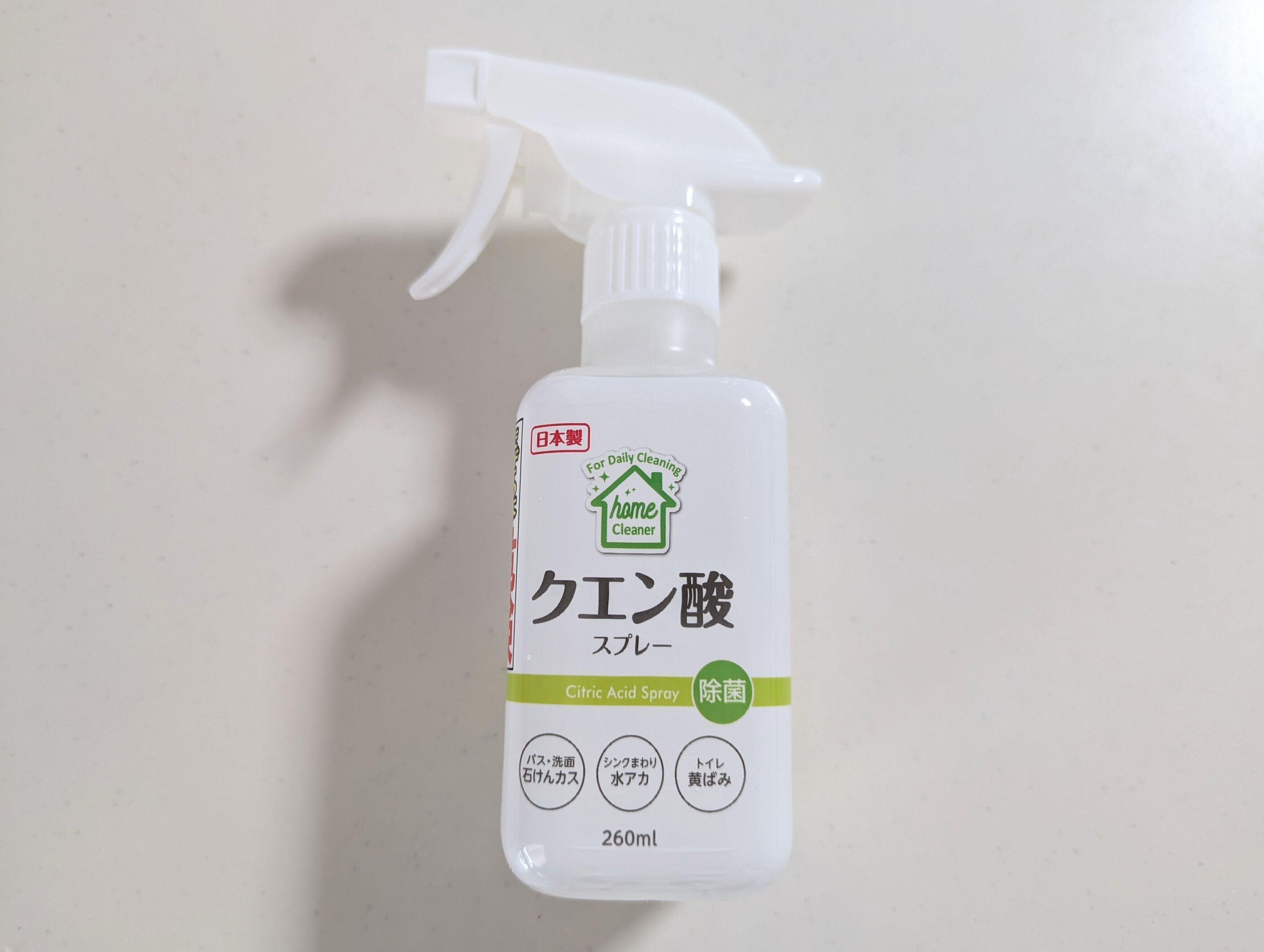 専用洗剤を増やしたくないという気持ちから、汚れの性質に合わせて洗剤を使い分けるナチュラルクリーニングを参考に、水回りの掃除に使っているのがクエン酸。特にセリアの『クエン酸スプレー』(110円)がお気に入りです。