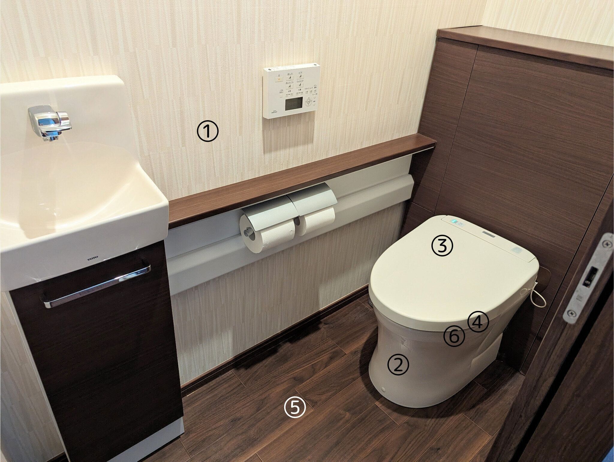 汚れがつきやすい便座裏のゴム部分や、水垢が気になる手洗い器の水栓は、スプレーを染み込ませたキッチンペーパーを貼りつけて、時々クエン酸パックを。