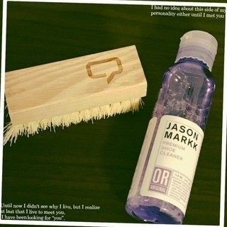 もこさんが靴洗いのおともにしているのは、シュークリーナーとブラシのセット「JASON MARKK」。シュークリーナーの液を数滴たらしたブラシで靴を磨いて、水で洗い流すだけです。レザーやナイロンなど、様々な生地の靴に使えるのも良いですね♪