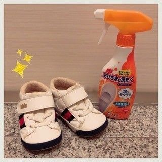 emmyさんが子どもの靴洗いに使用しているのは、泡で洗える「おひさまの洗たく くつクリーナー」。これで靴を洗ってから明るいところに干すと、クリーナーに含まれた光漂白成分が、汚れやニオイを分解してくれるそうです。力を入れて靴を擦る必要がないので、時間がない時にもおすすめ♪