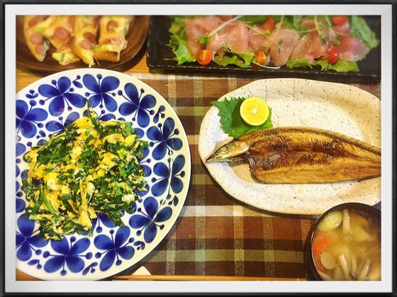 この日のメインは魚。“魚焼きグリルで焼く”という調理法なので、副菜は“魚焼きグリル以外”の調理法で考えます。簡単にフライパンで1品できるニラ玉、トースターできつねピザ、冷蔵庫整理として豚汁、そしておつまみに切って乗せるだけ簡単カルパッチョという具合に考えていくそうです。