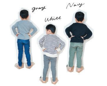 「子どもが自分で選んでも、組み合わせがちぐはぐにならないから」と、長男&二男の服は、グレー、白、紺に統一。自分で服を出して着てくれるだけで、朝のドタバタがグッと減りました。