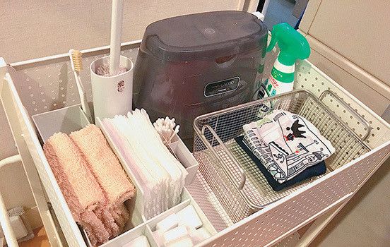 ぞうきんやスポンジなど掃除に必要なものは全部キャスターつきワゴンにのせておけば、掃除する場所にワゴンごと移動できてスムーズ。すぐに掃除が始められます(整理収納アドバイザー/勝谷ゆみさん)