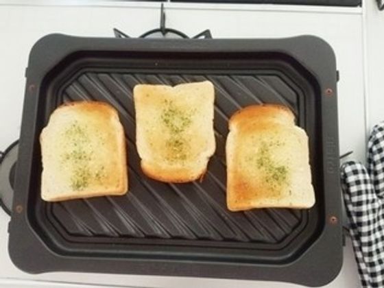 おつまみにもシチューのお供にもなるガーリックトーストもトースターでちゃちゃっと完成♪簡単で家にあるもので作れるのにただのトーストより高評価なのがうれしいですね!叶希子さんも旦那さんも大好物の一品です。