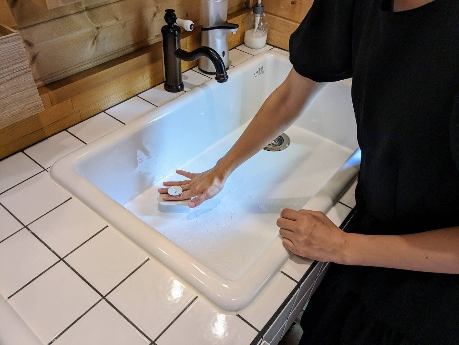 洗面台の掃除用に長年スポンジを用意してきた筆者ですが、キッチンほどはヘタらないにしても定期的な交換は必要でした。また、濡れたままの状態で置いておくモノなので、正直衛生面も気になっていたところ。