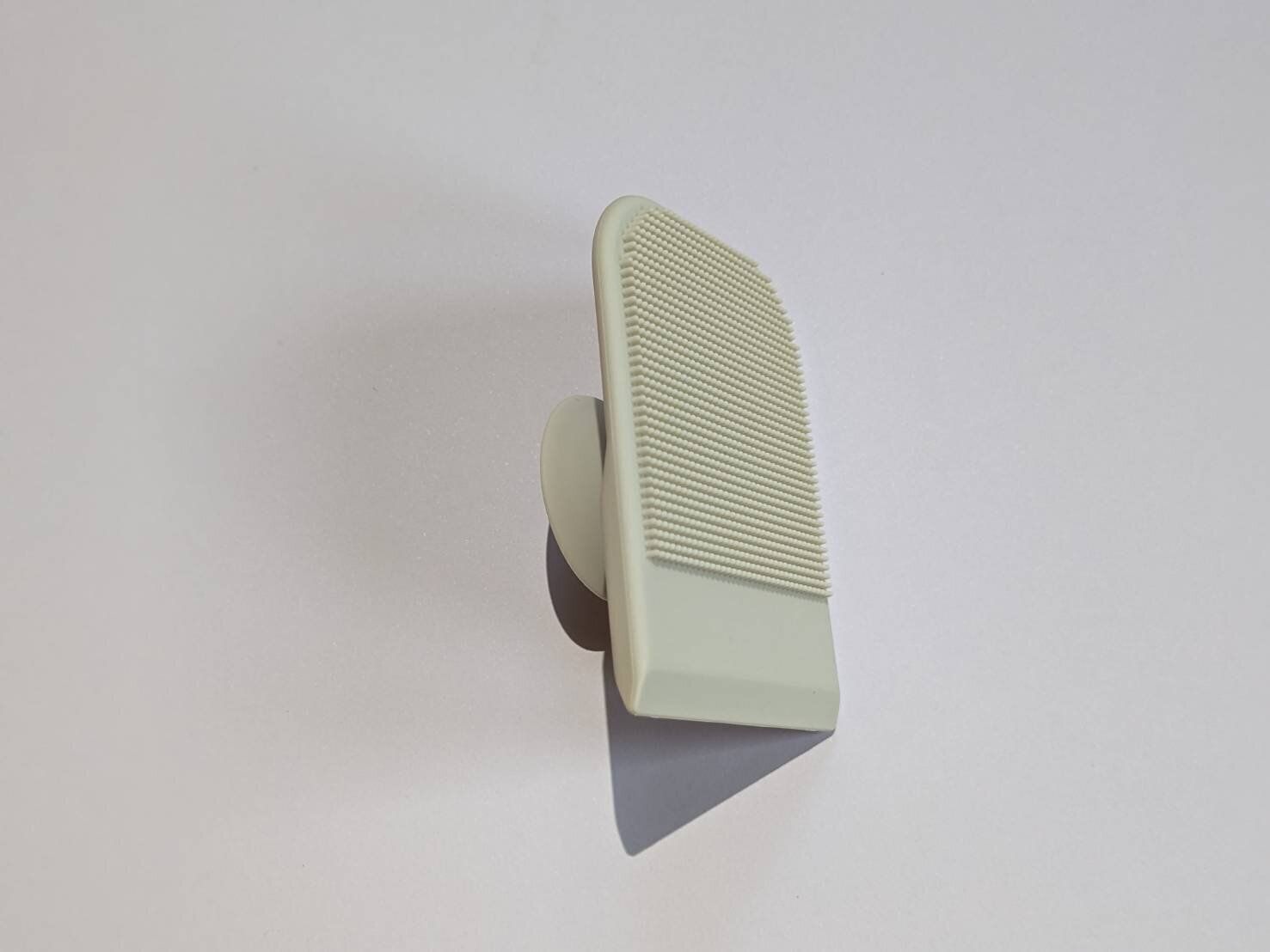 「ブラシ」と「スクイージー」の二役として販売されていますが、実はこれ、「ホルダー」も兼ねているんです。背面に吸盤の付いた珍しいデザインで、本体をそのままキッチンのシンクや洗面台にペタッと貼り付けることができます。ホルダー要らずとあれば、まさに一個三役の優れモノ!