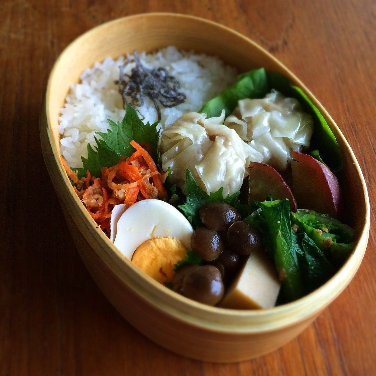 サンキュ!ブロガー野口ゆかさんからもうひとネタ。野口さんはとにかく朝はゆっくりと寝ていたい派。そのため朝から作るのはメイン料理のみで、あとは常備菜からセレクト。そのメインのおかずも朝から作るのではなく、前日の夕飯で作った具材をアレンジするのみ。この日は夕飯のワンタンスープの肉ダネをシュウマイにしておき、お弁当のメインとして活用しています。