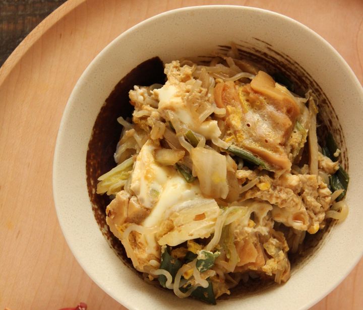 6.ボウルに卵を溶き入れ、5に加える。フタをして1分ほど煮る。