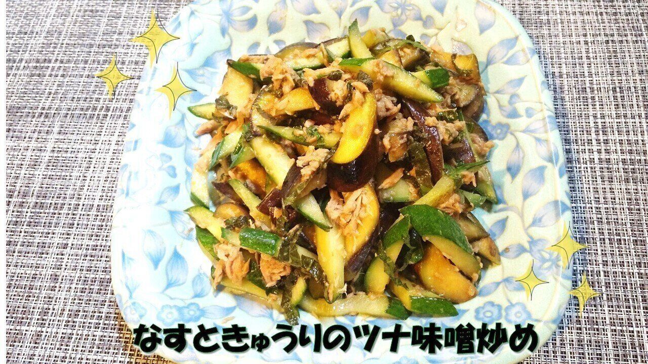 全体が混ざったらしそを加え、サッとひと混ぜしたらすぐに火を止めると、「なすときゅうりのツナ味噌炒め」が完成です!