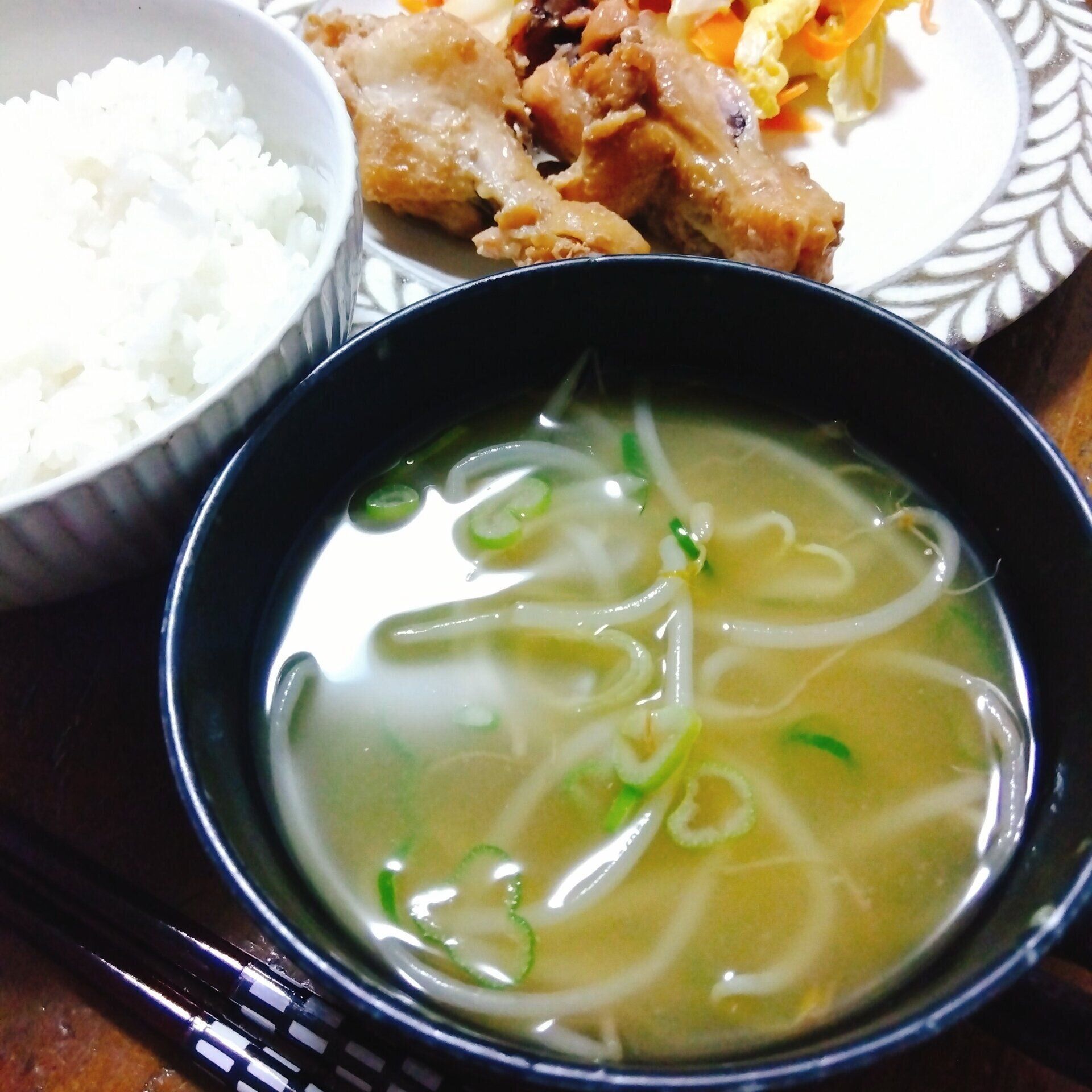 みそ汁をつくるのは面倒だけど、野菜不足が気になる!そんなときは「もやし」と「カットねぎ」を使って、みそ汁をつくっています。もやしのシャキシャキした食感のおかげで、よく噛んで食べることができ、香味野菜のねぎもたっぷり使うことで、手抜き感のない仕上がりに。