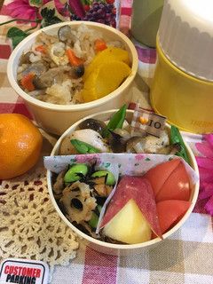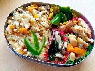 サンキュ!トップブロガーたかぴーままさんの詰め方がキレイなお弁当は、センター試験に臨む娘さんへつくったもの。娘さんの好物である炊き込みご飯を主食に、鶏胸肉としめじとスナップえんどうのオイルガーリック炒め、枝豆ひじき煮、串切りミディトマト、リンゴを一切れ。彩りがよいのはもちろんのこと、仕切りを使うことで丸型お弁当箱にうまく収まりました。