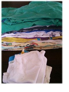 大掃除に向けて子どもたちの着なくなった洋服をウエスにした二宮由香さん。もとの洋服の縫われた線に合わせて袖を切り、肩と脇を切ることでほつれ知らず♪気持ちよく切れるとストレス発散にも!?綿素材が使いやすくておすすめだそう。