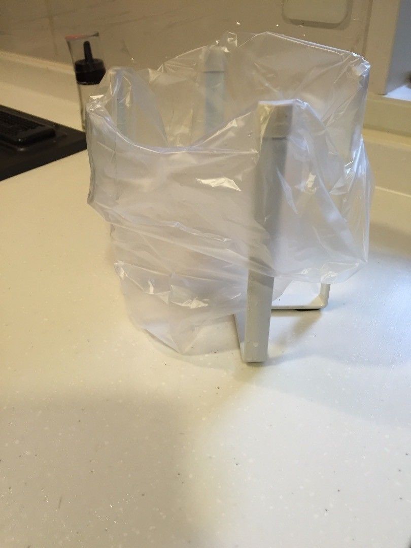 サンキュ!ブロガーchiharuさんは、脱!三角コーナーを実践している1人です。とは言え、毎回調理のたびに出てくる廃棄物を毎回袋に入れたりボウルに溜めて捨てたりと、あまりテンションが上がる作業ではありませんでした。そこで牛乳パックなどを干したりもできるこの用具にポリ袋をつけることで改善!使用しない時には折りたたんで収納も可能ですから、場所も取りません。