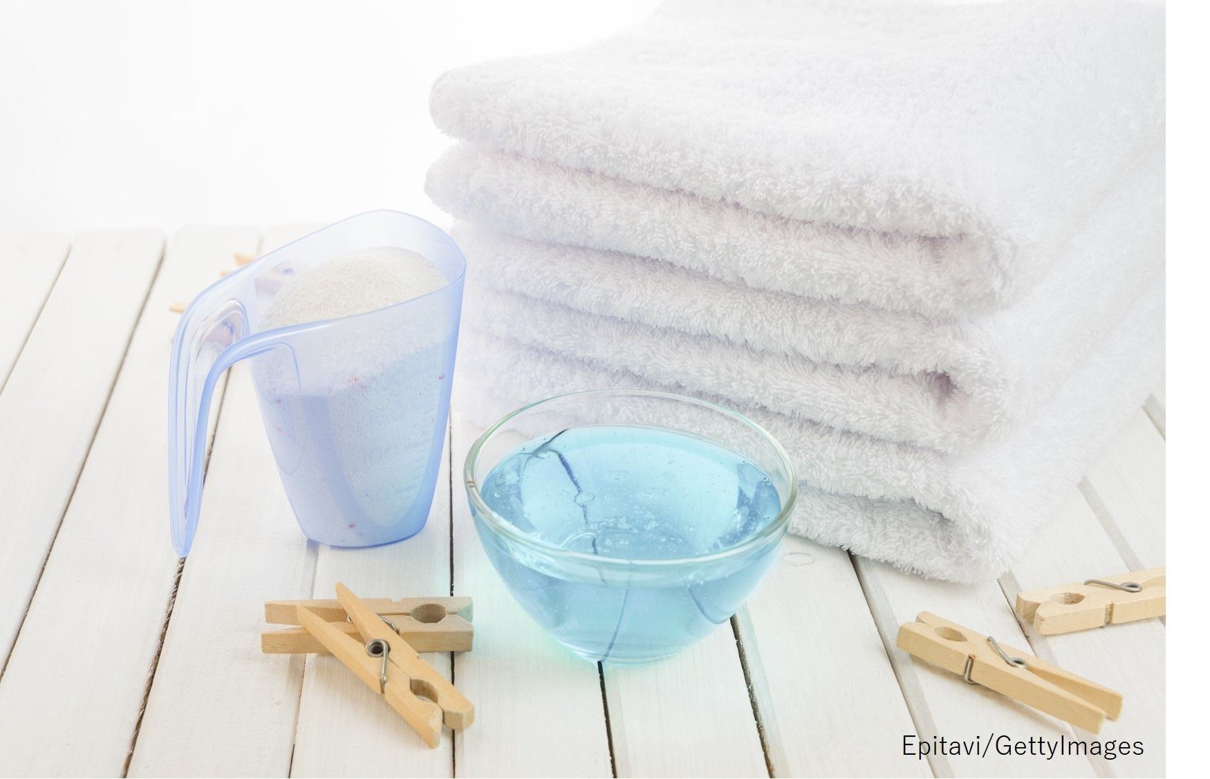 ゴワゴワの原因は石けん洗濯特有のもので、衣類やタオルの繊維が固まってしまっているために起こります。