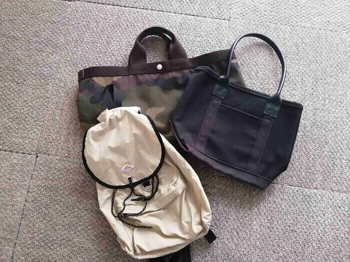 革のバッグを使っていたときもありますが、メンテナンスが必要で、水濡れなどでシミになりやすく、バッグ自体も重いため手放しました。今はナイロンやキャンパス地メインです。