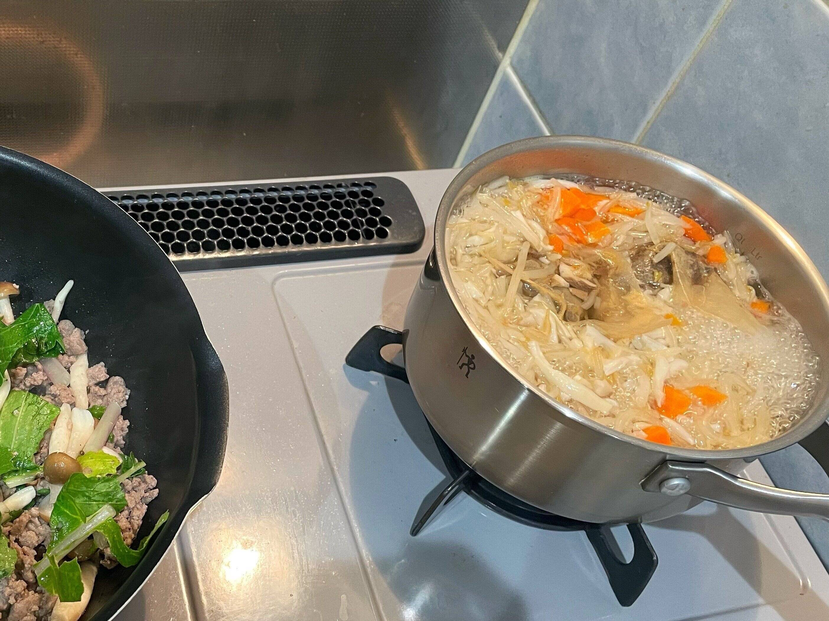 「今日はもう何も作りたくない」という日は、肉や野菜をつめこんだスープで乗り切ることも。おかずだけ作って、スープはインスタントで!という日もあります。