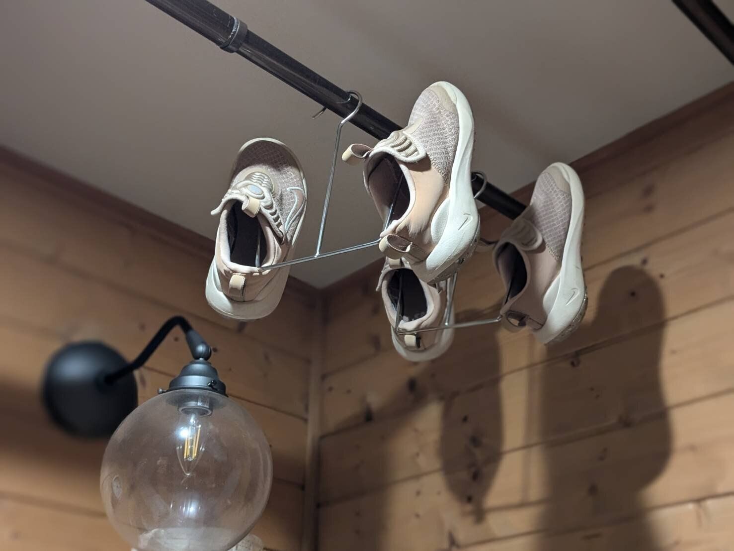 そして実はこれ、子どもの靴はもちろん、大人の靴まで干すことができる優れもの!筆者宅では、13cmのベビーシューズから29cmの夫の靴まで問題なく干してきましたよ。