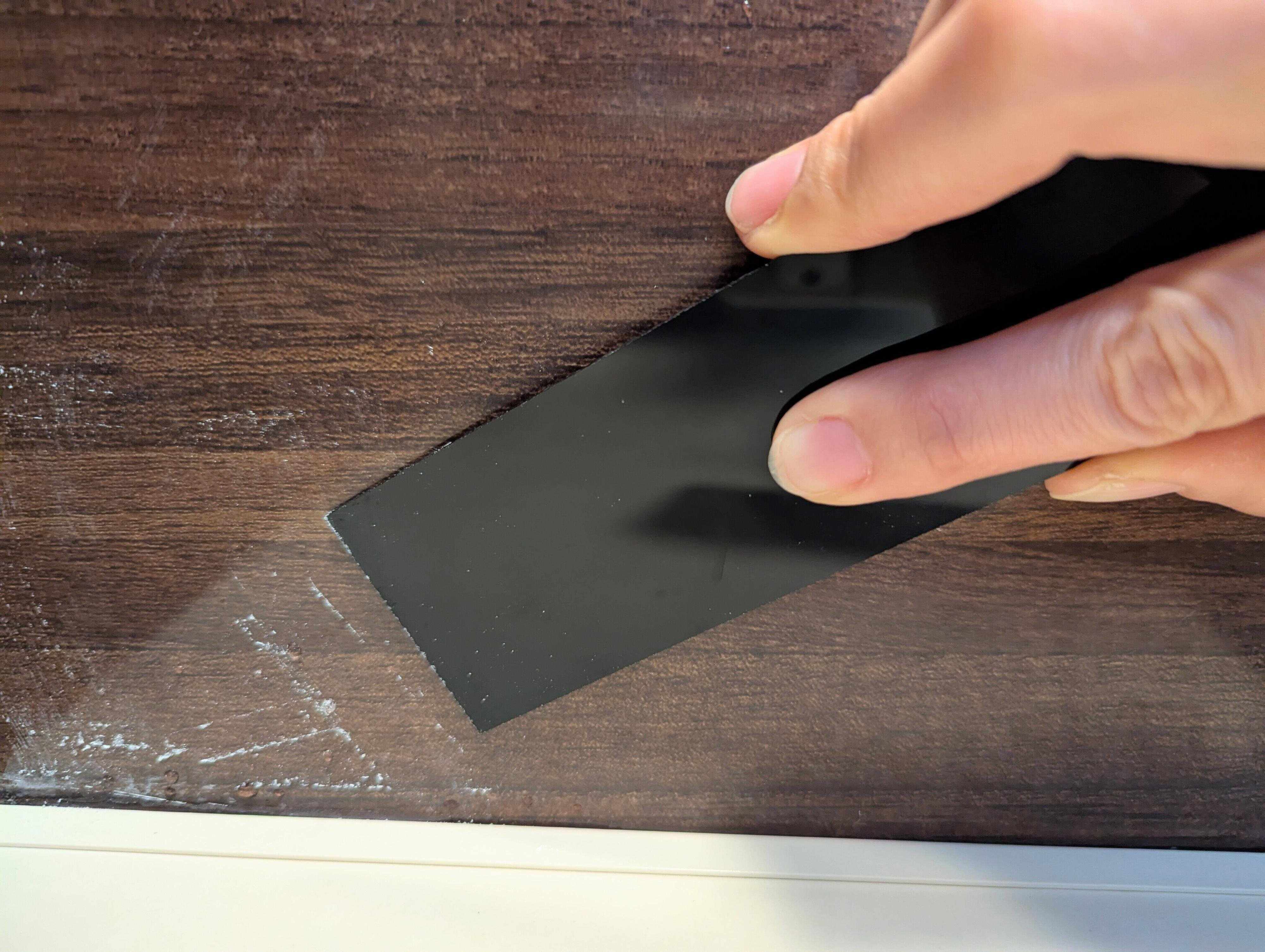 こうした汚れにはプラスチックカードを使う方法も知られていますが、根岸棒はその硬さと2mmの厚みが絶妙。板がしなることなく、軽い力で動かせるからストレスフリーです。シンプルすぎるお掃除グッズが、洗剤も太刀打ちできなかった長年の汚れをスルッと落としてくれました。