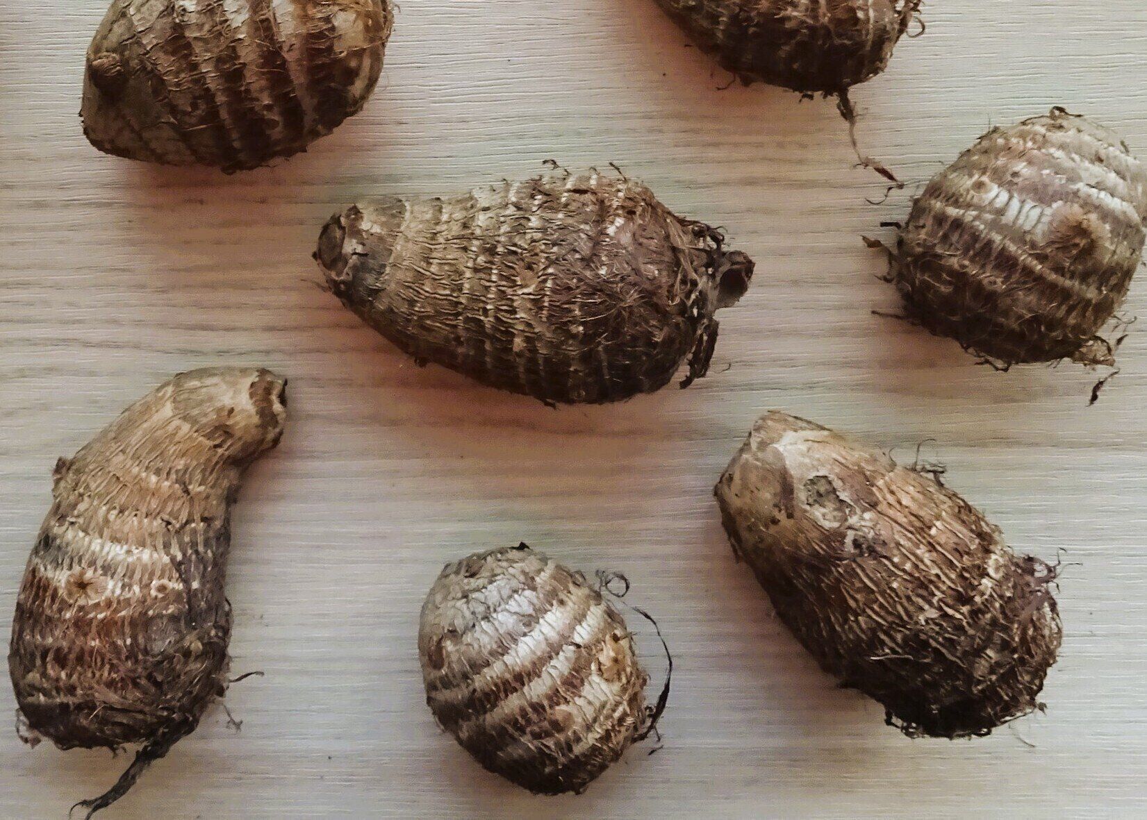 里芋は丸くコロコロしたかたちで、皮の模様のシマシマがしっかりあるものほどおすすめです。