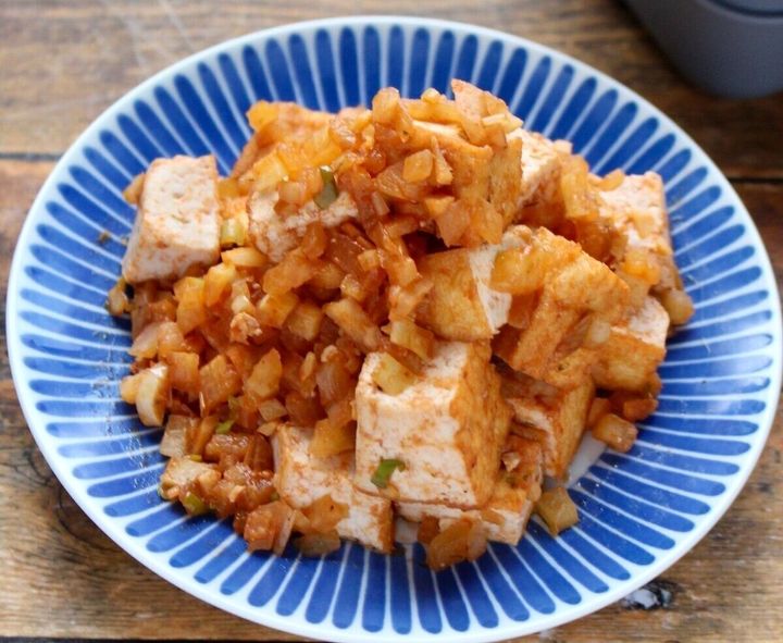豆腐の代わりに厚揚げを使っているので、味しみがよく、ご飯が進みます。