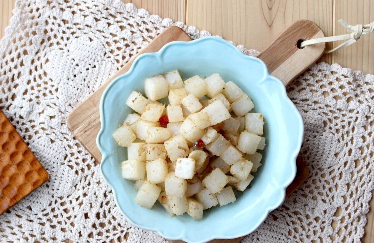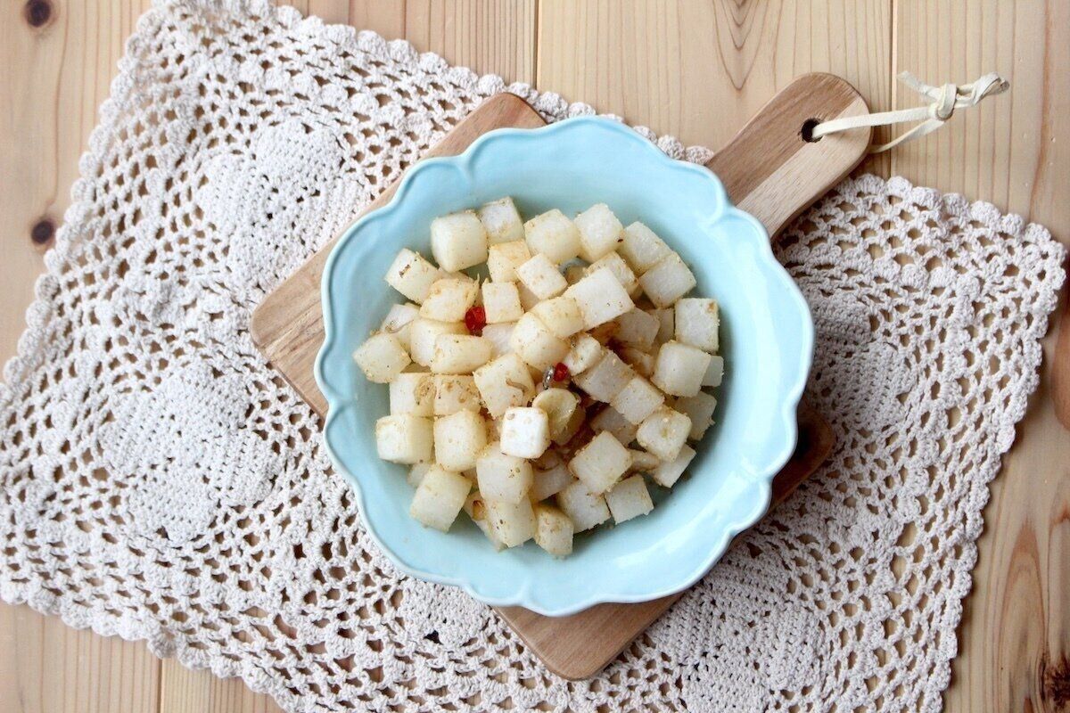 にんにくをきかせたピリ辛の大根ナムル。