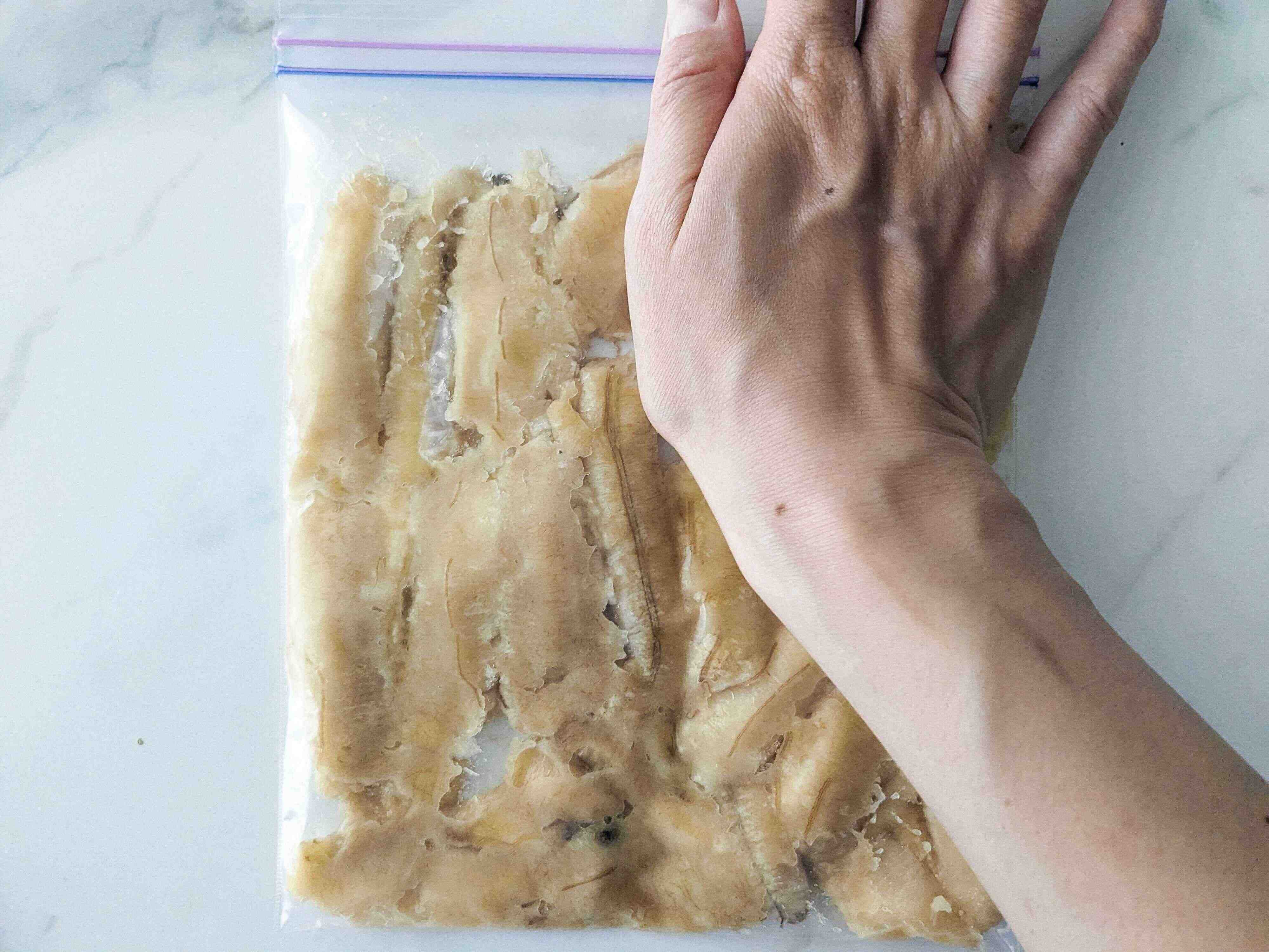 冷凍保存中に酸化・乾燥を防ぐため、必ず保存袋に入れて保存することをおすすめします。