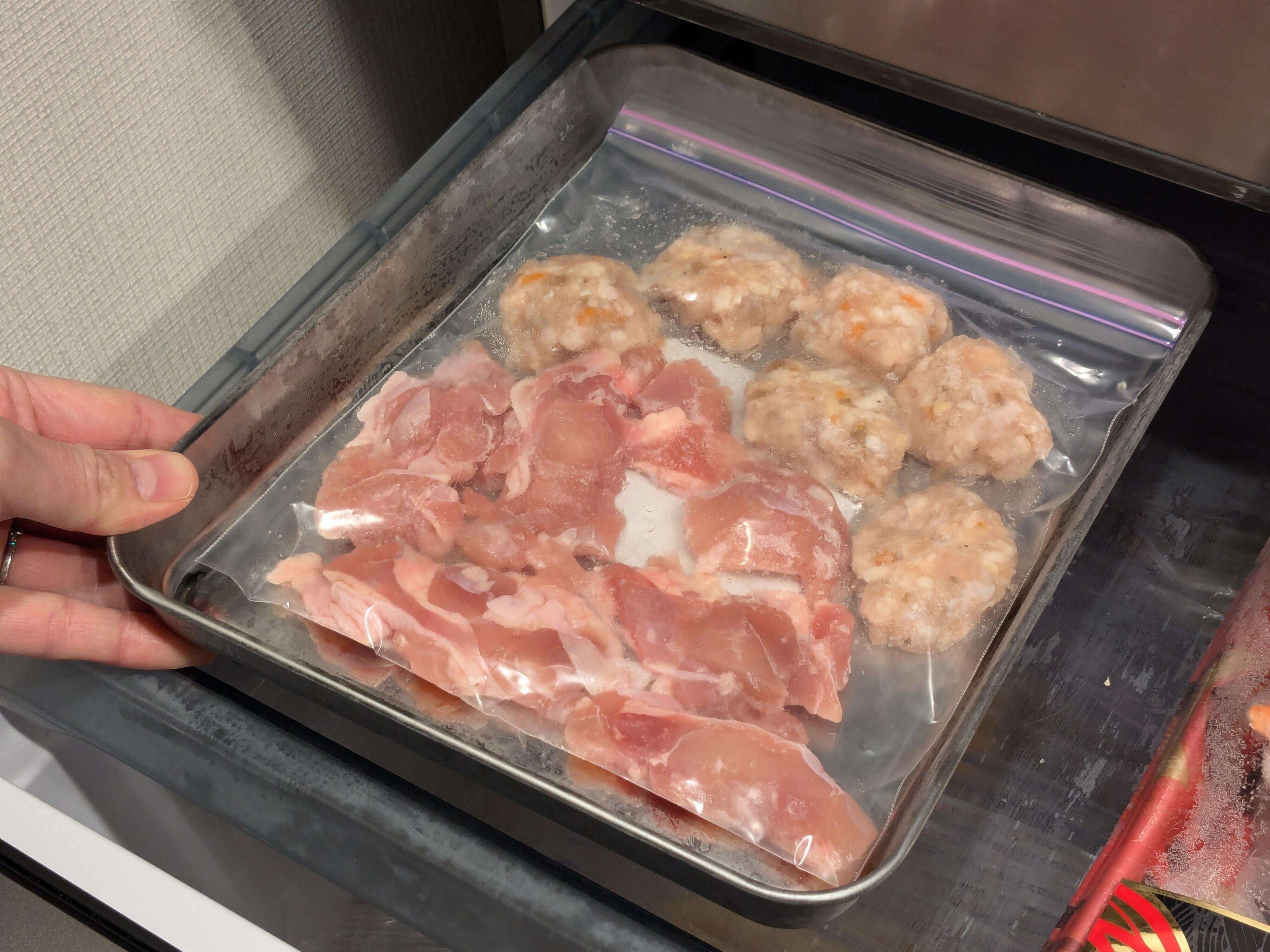 また、冷蔵室で解凍を行う際は容器にできた水滴が床を汚してしまったり液漏れをする場合もありますが、アルミトレイに置くことで全て防ぐことができます。