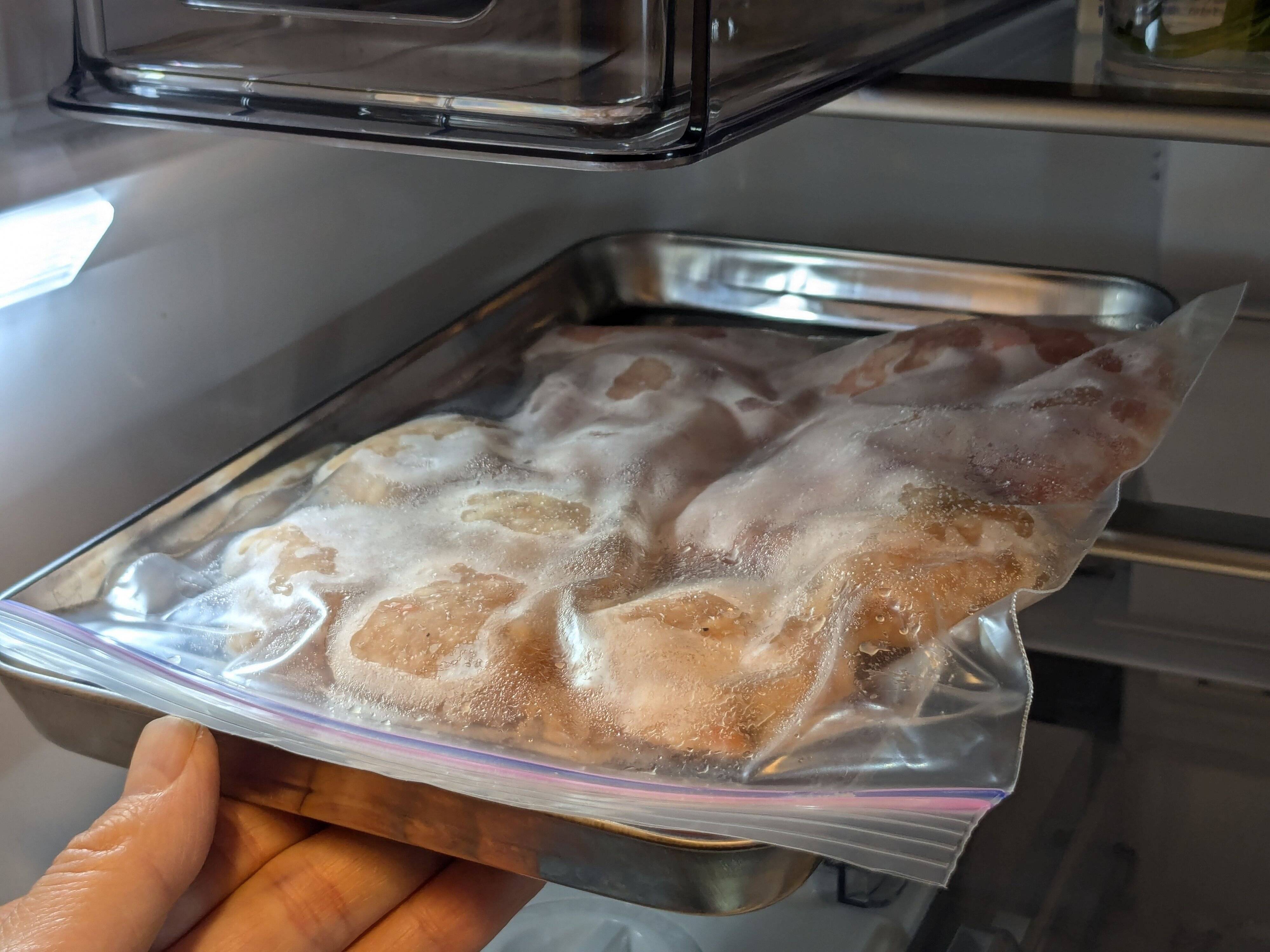 食品をアルミトレイに置いて冷凍室に入れることで、食品の冷凍時間を短縮することができます。
