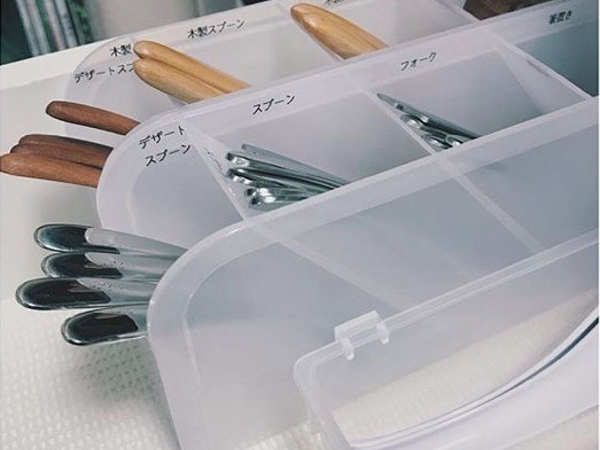 カラトリーを取り出す際、柄が一緒で取りだしたいものを取り出せない…。そんなプチストレスを解消するのが、こちらのようなラベリングです。取り出しやすいだけでく、家族みんながお片づけ上手になれるナイスアイデアです。