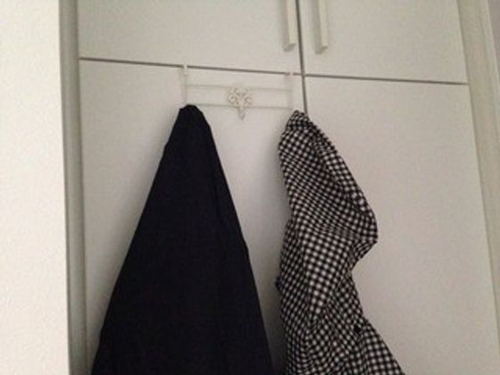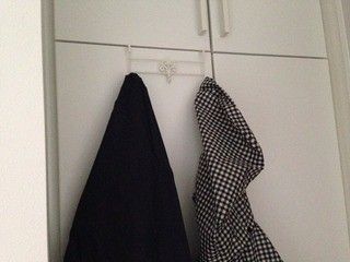 濡れたレインコートも、しまう前にしっかりと乾かすことが大切です。サンキュ!ブロガー木下恵梨さんは、靴箱に100均のフックを取り付け、使った後のレインコートをかけて乾燥させています。濡れたものを家の中に持ち込まず、玄関先で乾かせるのは良いですね。普段はお客さま用の洋服かけとしても使えて、便利ですよ。