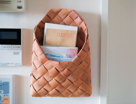 請求書やチェックが必要な郵便物は、廊下に壁掛けカゴで収納場所をつくって、リビングへの持ち込みを禁止に。家計簿をつけたら処分し、中身をリセットします