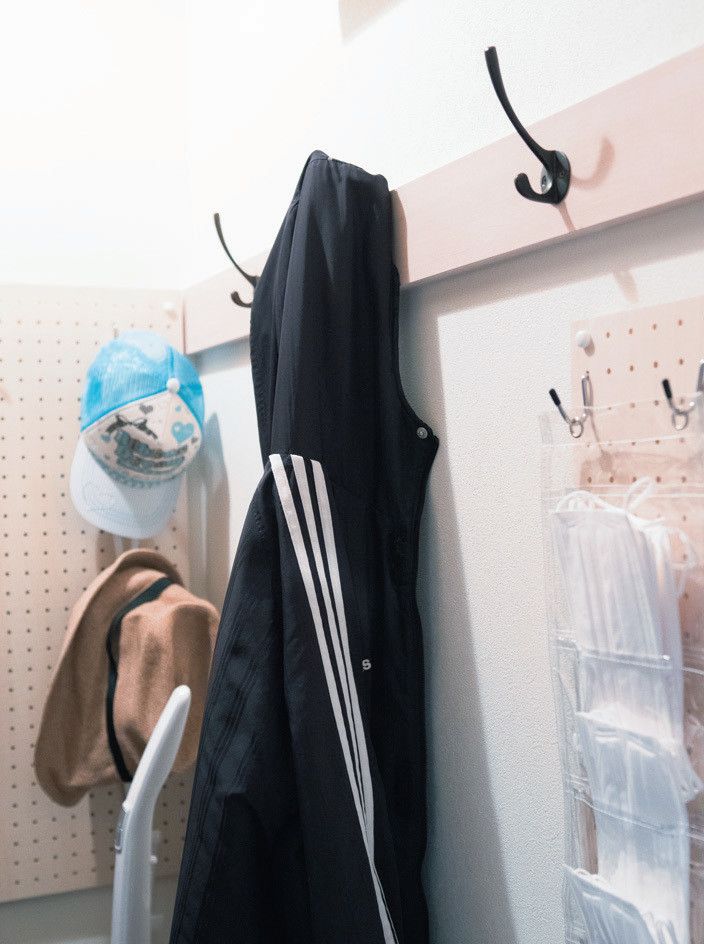 上着は玄関で着脱する習慣に。「夫はハンガーに掛けるのが苦手なので、引っ掛けるだけにしたら、戻してくれるように」