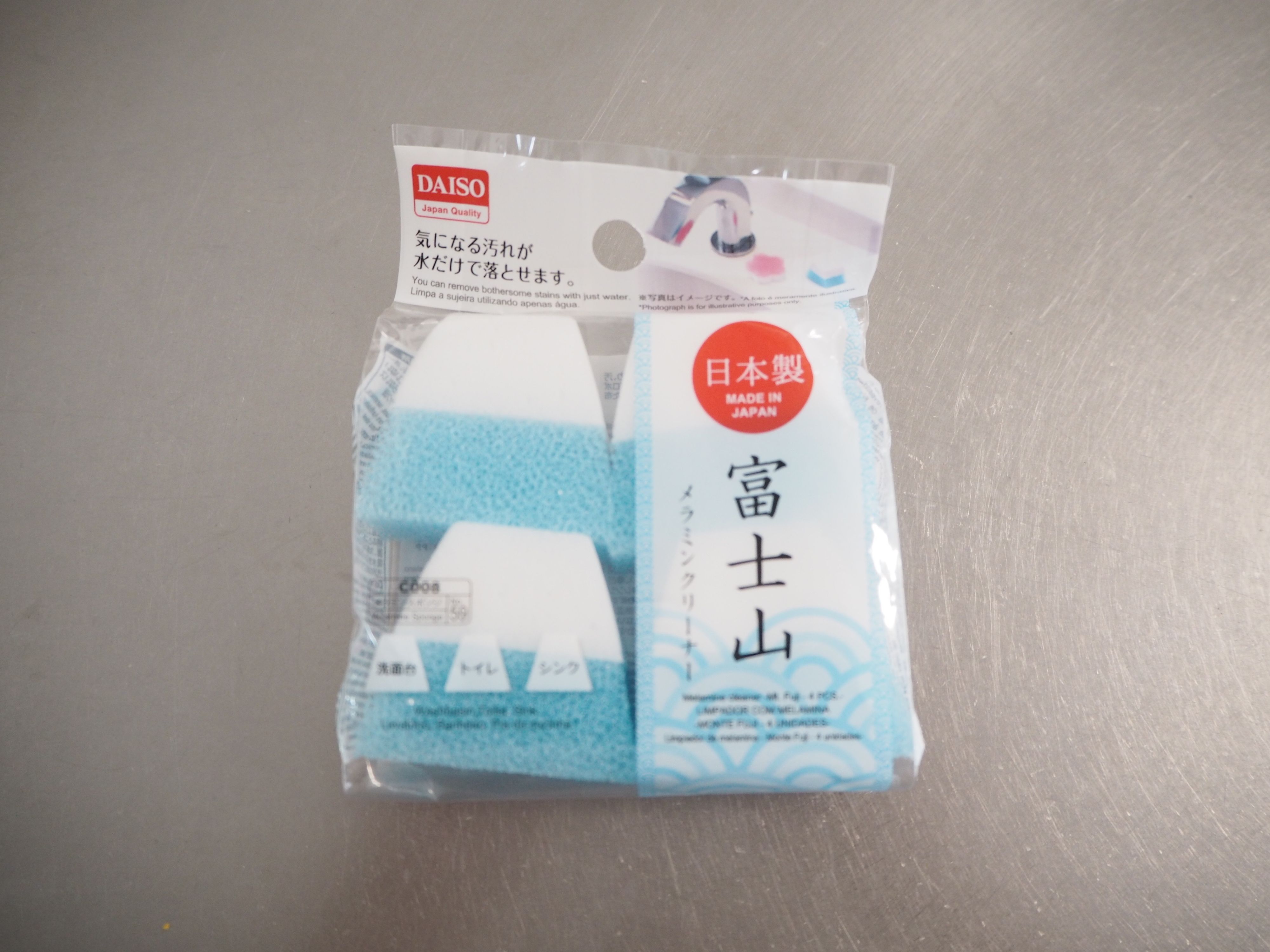 他にも富士山型の「メラミンクリーナー」や桜の形、鳥の形など(全て4個入り¥108)もあります。