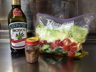 ねねーこさんのおすすめは、ジッパー付きポリ袋サラダ。オリーブオイル、アンチョビ、塩、レモン汁、醤油で作ったドレッシングと野菜をジッパー付きポリ袋に入れ、空気を抜いて閉じるだけ。食べるときは、ジッパー付きポリ袋のまま振れば簡単に混ぜられます。使い終わったジッパー付きポリ袋は捨ててしまえば、洗いものも減って時短になりますよ。