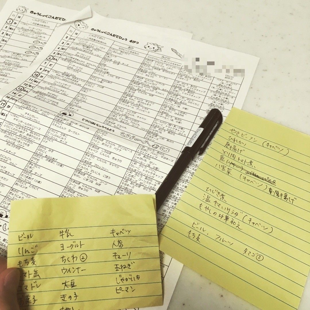 ワーママの場合、買い物に行ける回数も限られているので、いかに効率よく買い物できるかがポイントになりそうですね!事前にある程度の献立を考える!メニューが思いつかなければ給食の献立を利用!!で、一度試してみてはいかがでしょうか?