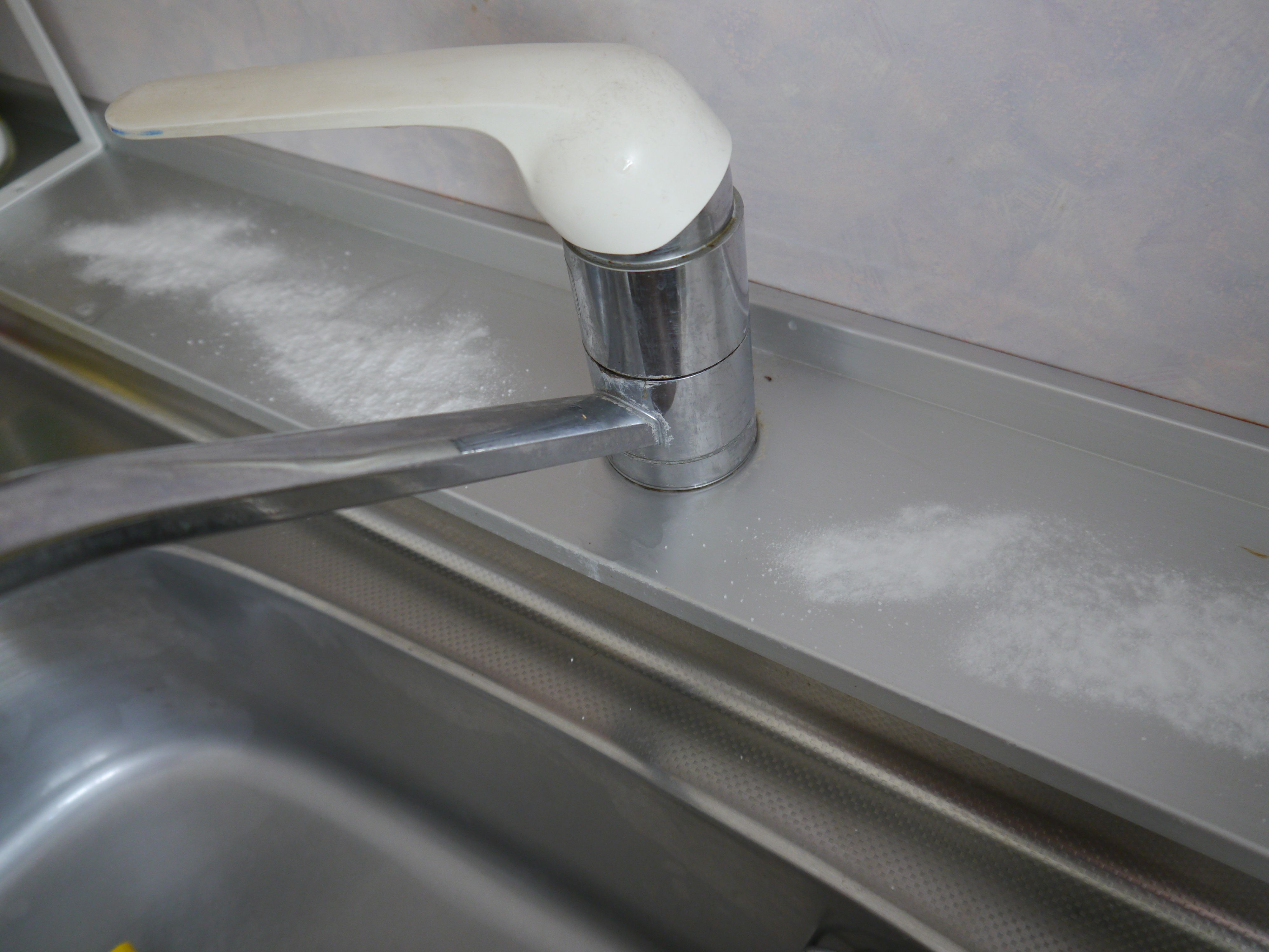 粉でお掃除するときって何かにつけてペースト状にしなくちゃいけないのが面倒ですよね。サンキュ!ブロガー田中千恵さんのシンク掃除方法は、重曹をそのままシンク上にまいてゴシゴシするだけ!どうせ水で流すときにペースト状になるので、最初から粉のままでいったほうが時短にも繋がりそうですね。