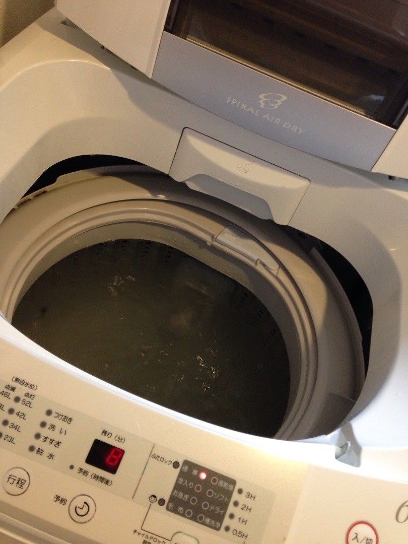 サンキュ!ブロガーchigさんは、洗濯機の高数位に水をはりセスキ炭酸ソーダを洗濯機に入れて運転させるだけの、ほったからし洗濯機掃除を実行。開始15分ほどで洗濯層の裏側にこびりついていた固形物が出てきたそうです。