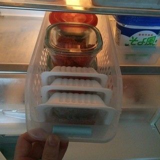 野口ゆかさんは、冷蔵庫の一番下の段に、納豆やツナマヨ、明太子などのご飯のおともを収納するスペースを作っています。こうすることで、子どもが自分で朝食の準備ができるため、お弁当づくりなどで忙しい朝の時間に助かるそうです。明太子など小分けで冷凍保存するものは、冷凍庫に瞬間冷凍する用の銀バッドを入れておくと便利ですよ。