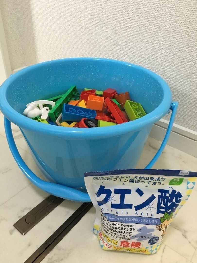 子どもが触るおもちゃ類も、暑くなってくると雑菌が心配ですよね。サンキュ!ブロガーここゆきさんは、クエン酸を溶かした水をバケツに入れ、その中にLEGOをドブン!30分漬け置きしているそう。クエン酸なので子どもが触っても安心なのが嬉しいですよね。