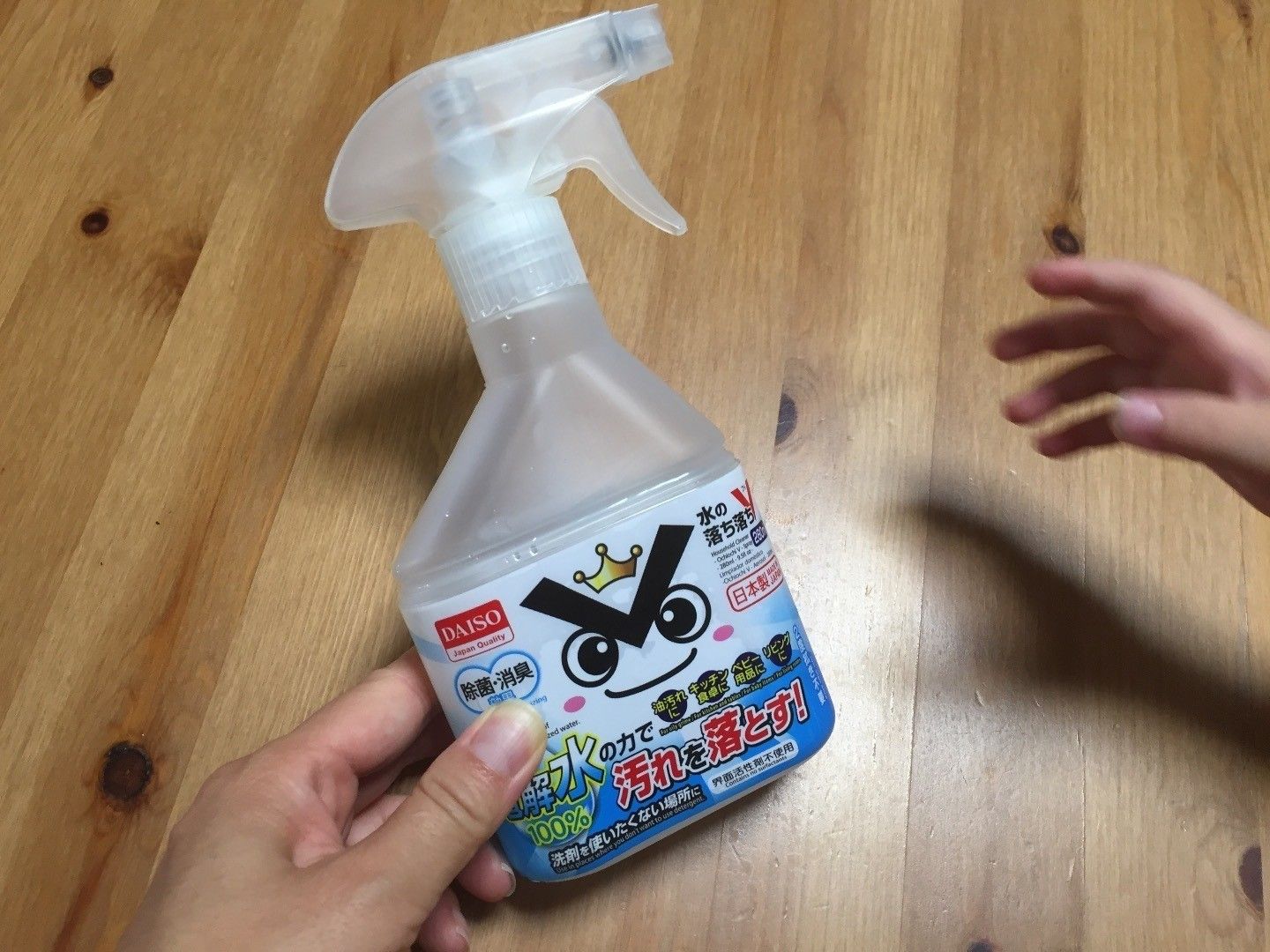 最近「おそうじやさんごっこ」にはハマっているというサンキュ!ブロガーあゆ夏さんのお子さん。このやる気を活かしてお掃除を手伝ってもらっています。ダイソーで購入した電解水を冷蔵庫にシュッシュ。あとは拭き取るだけで冷蔵庫の外側お掃除完了です。電解水だから安心して使わせているそう。
