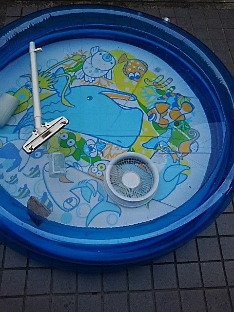 プールの残り水とお風呂の残り湯を利用して、サーキュレーターや掃除機のゴミ受けなどをIN!アルカリ電解水を吹きかけているので、水でジャブジャブ洗えばキレイに汚れも落ちるのだとか。せっかくの大量の水、再利用しない手はありません!