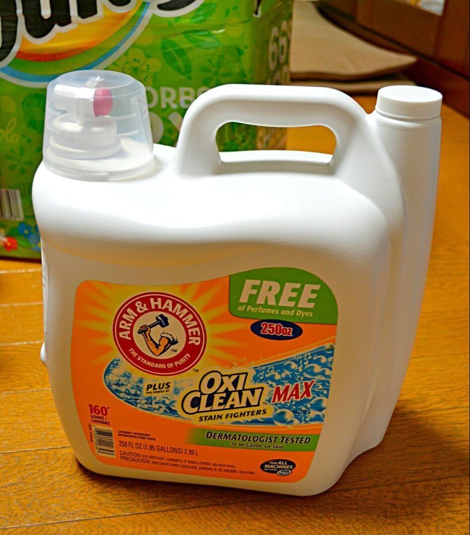 なんとオキシクリーン入りの洗濯用洗剤もあるんです!コストコで購入できるそうです。単独のオキシクリーンでももちろん洗濯可能ですが、色柄物が本当に大丈夫なのか心配になりますよね。これなら専用の洗剤ですからわざわざ分けて洗う手間も省けそうですね!