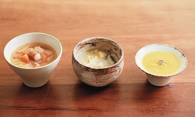 和食のときはみそ汁、洋食のときはコンソメスープでポトフー、ワンプレートでラクした日はちょっと頑張ってポタージュと決めています。この3つがあれば、だいたいどんなおかずともマッチ!