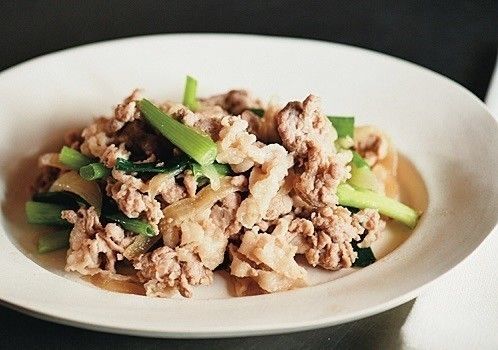すき焼き風の味つけにしょうがを加えて、しょうが焼きにアレンジ。豚肉はロースがなければ、しゃぶしゃぶ用の薄い肉で作ります。しょうがをにんにくに換えることも。