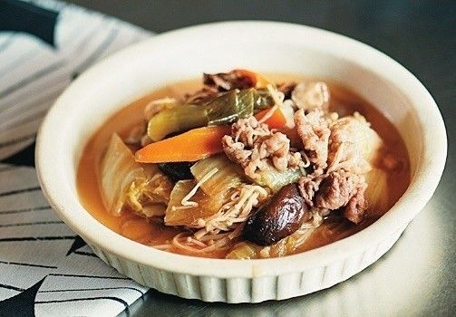 基本の甘辛味はしょうゆ+酒+砂糖(1:1:1)。すき焼きは、この調味料と野菜の水分だけで煮るのでこっくりおいしい。少しの牛肉に、きのこやしらたきで、かさ増し。