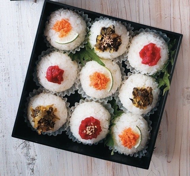 どんなおかずとも相性がいいのは王道のおにぎり。具は中に詰めず、のせて作れば時短になって見た目も華やかです。好きな具や苦手な具が一目瞭然なので好き嫌いのある子もパクパク食べ進みます。