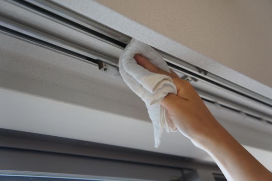 薄めた中性洗剤と掃除クロスを使ってカーテンレールを拭くと、驚くほど汚れていることも。