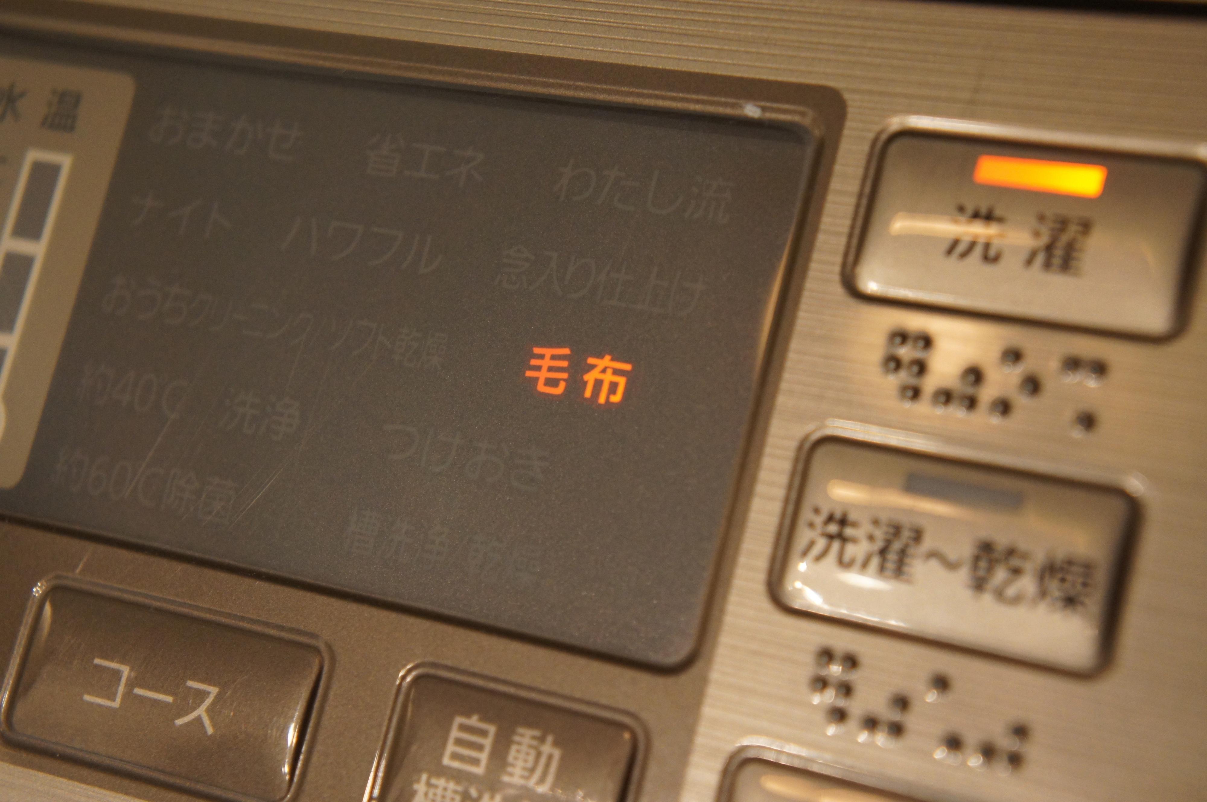 洗濯機に入れたら「毛布コース」で洗います。洗剤は液体のおしゃれ着用洗剤(中性洗剤)がおすすめ。